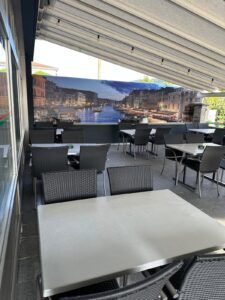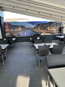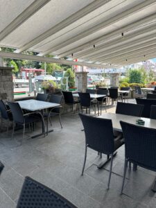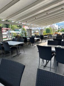 Die Gartenterasse ist gross, lädt ein unter freien Himmel, am Tag wie am Abend,  unsere leckeren Speisen und Getränke  zu geniessen, mit Familie oder  Freunden in enspannten Geselligkeit.